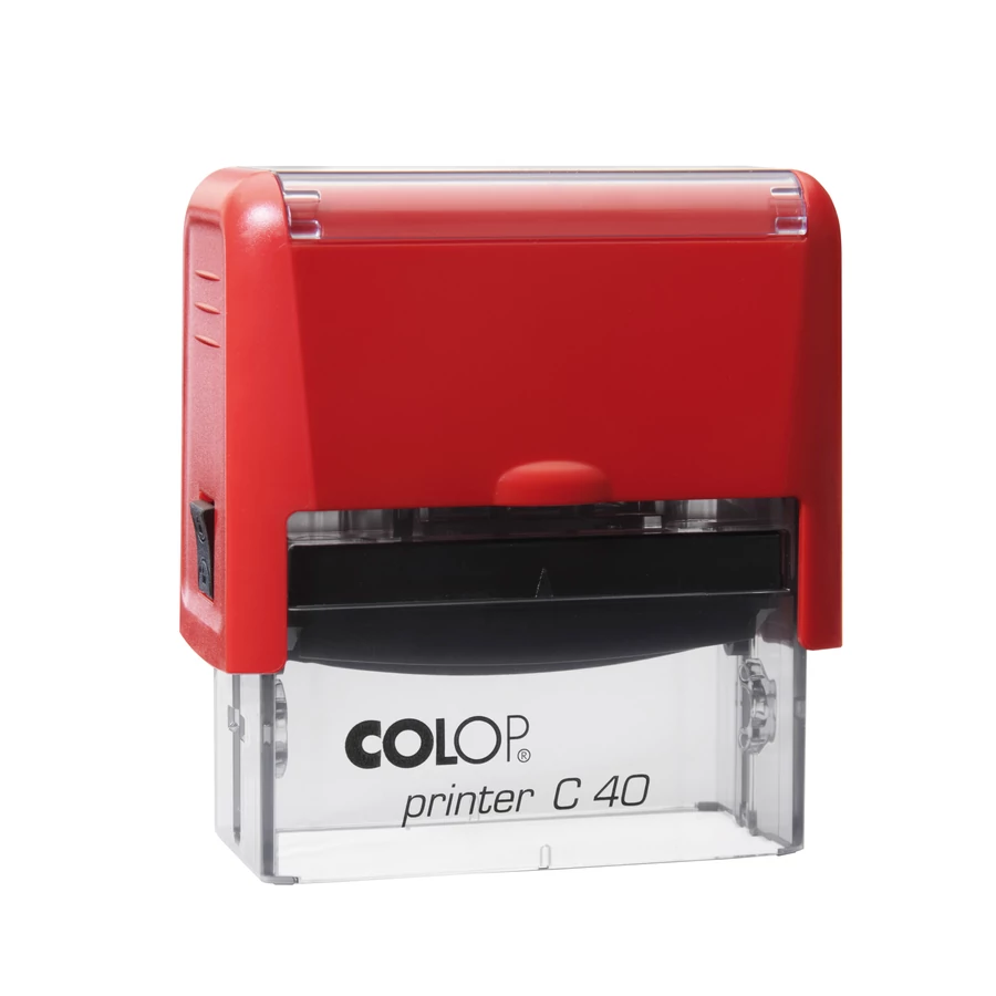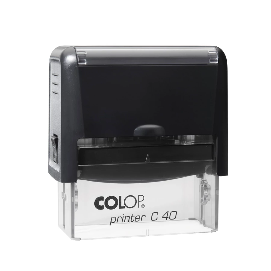 A Colop C40 nagyobb bélyegzőfelülettel rendelkezik, kb. 6-8 sor szöveg is elfér rajta. Ideális részletes céges adatokhoz, hosszabb szövegekhez, például banki adatok vagy számlázási információk feltüntetésére. Robusztus, irodai használatra tervezett eszköz.