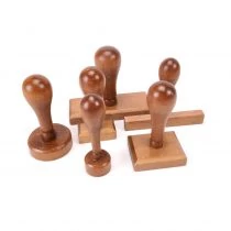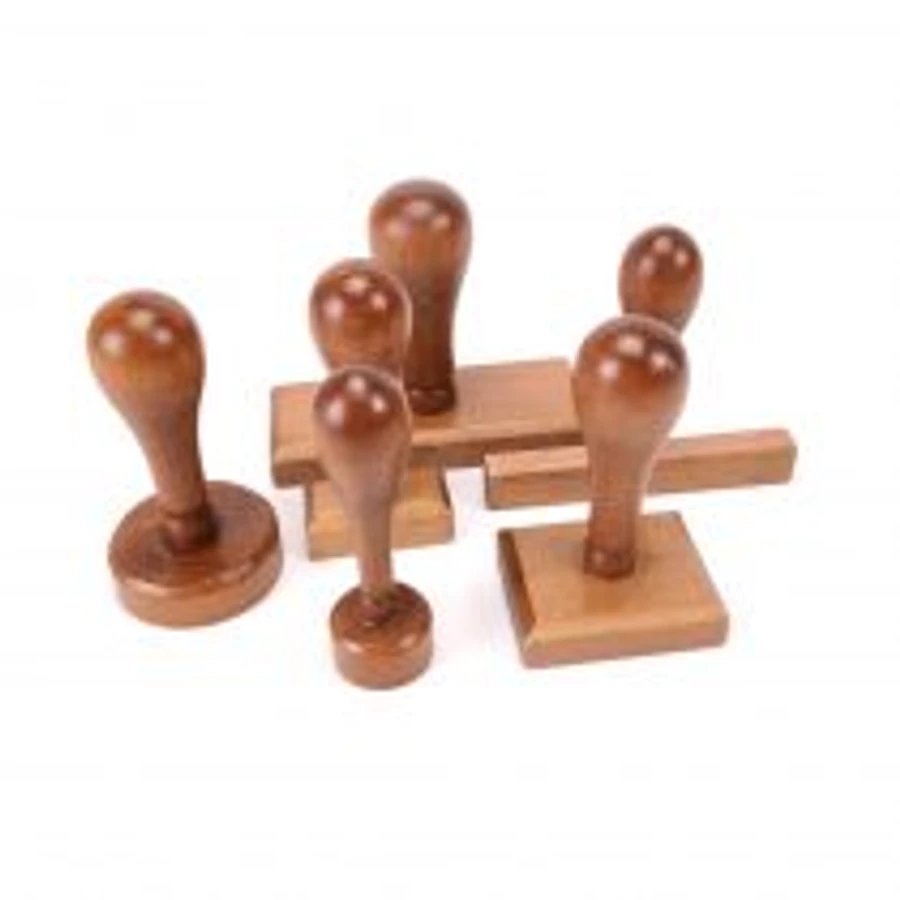 Hagyományos keményfa bélyegzők különböző méretekben.