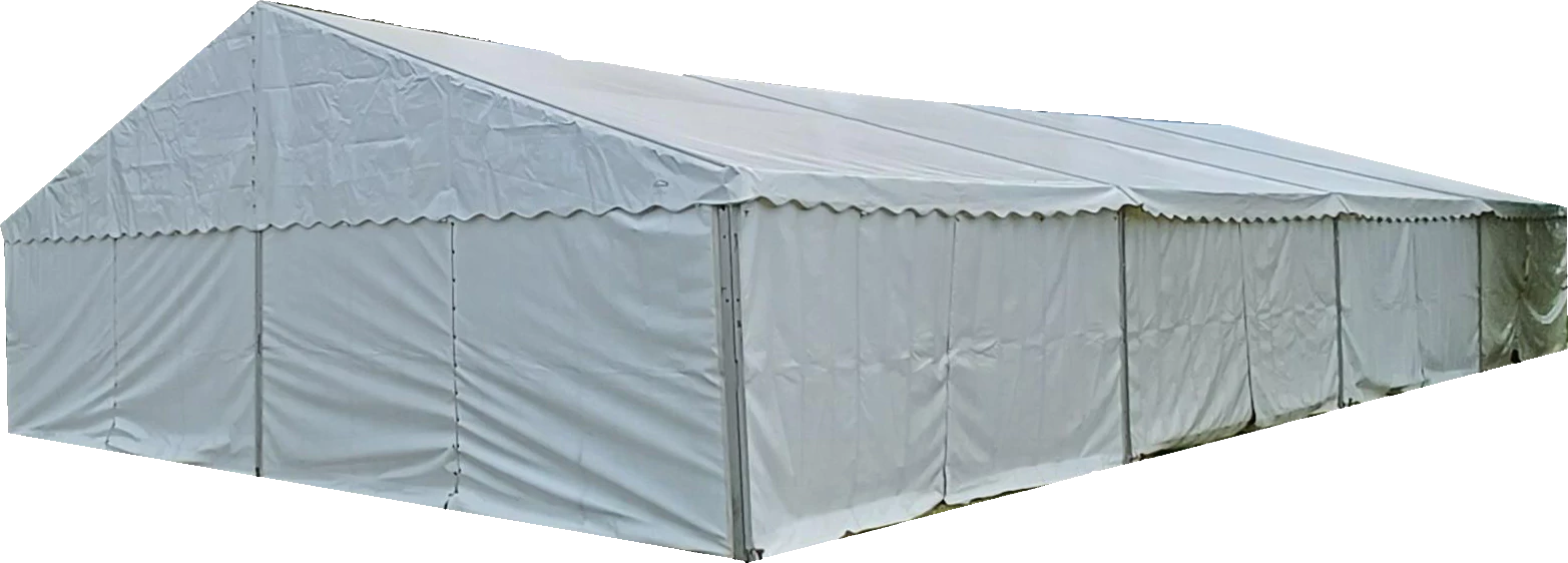 A sátor 50 nm-es egységekben növelhető, 50 nm-től egészen 700 nm-ig 10x5m-től, 70x10m-ig, így könnyedén igazítható a létszámhoz és a helyszínhez. Ebből a sátortípusból akár három darab is felépíthető egyszerre (méretegyeztetéssel!), ami ideális párhuzamos rendezvények vagy nagyobb területek lefedésére. Stabil szerkezete megbízható védelmet nyújt különböző időjárási körülmények között. Igény szerint oldalfallal vagy oldalfal nélkül is kérhető. Kiváló választás esküvőkhöz, fesztiválokhoz és céges rendezvényekhez.