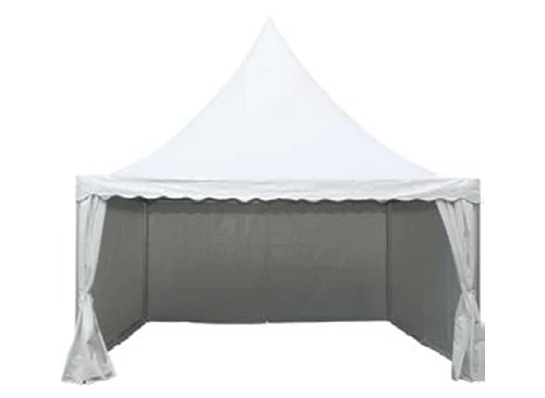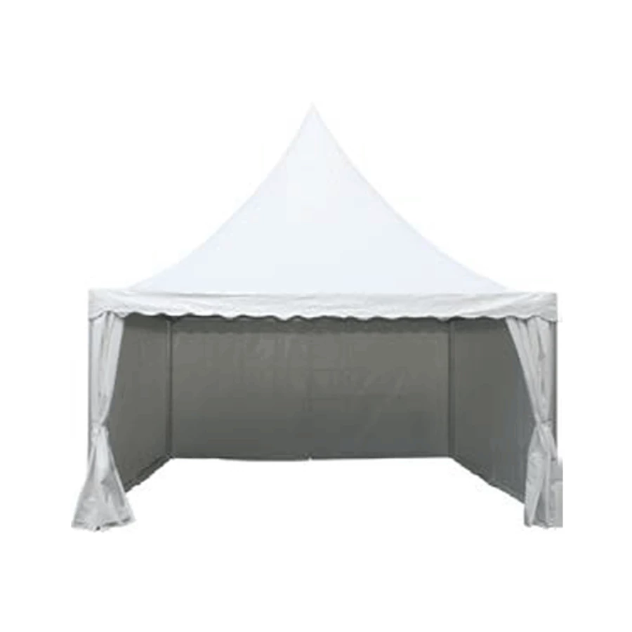 Fehér színű, baldachinos tetőszerkezete esztétikus megjelenést és ünnepélyes hangulatot biztosít. A 2,5 méteres oldalmagasság kényelmesen használható belső teret eredményez. Az 5 méteres csúcsmagasság levegős, impozáns térérzetet ad. Stabil kialakításának köszönhetően megbízható választás kültéri eseményekhez. Ideális esküvőkhöz, fogadásokhoz és reprezentatív rendezvényekhez egyaránt.